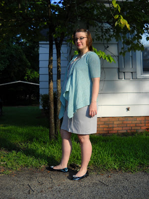 After not leaving the house for a week, getting dressed for work was kind of exciting. This dress isn't maternity; it normally has a a sash, so I just took that out. This cardigan hid my pregnancy a couple of times this winter before I shared the news at work. It's so billowy and shimmery, and it looks just as pretty over a long-sleeved shirt.