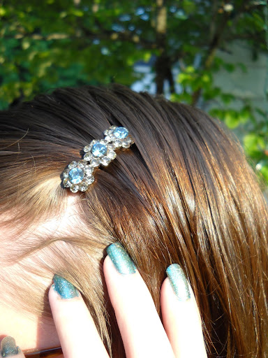 Sparkly barrettes make the weird phase of growing out a pixie fun. And fun nail polish helps everything. I never painted my nails until a couple of years ago. Pretty fingernails always make me feel happy when I'm working or writing. Both of these nail polishes haunted me from Sephora until I bought them. If something for $9 haunts you for a week, just buy it.
