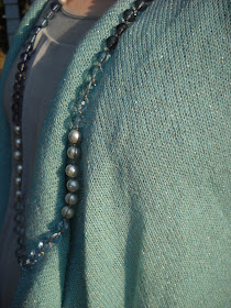 I wear a tank top under the dress to make it more work appropriate. Aren't those gold threads in the cardigan lovely? This is one of the necklaces I bought during my necklace craze. It's probably one of my favorites.