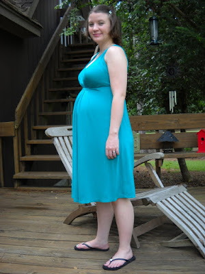 I've wanted a green dress for a long time. I didn't anticipate the first one being maternity! Now, all I need is a red bicycle and a picnic basket full of cherries (or some chocolate chips, which were my afternoon sweet snack).