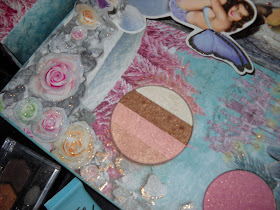 I have a few of these Maybelline Eyestudio sets, and they are the best drugstore shadows I've found as far as rich color and real sparkle. On the right is Sephora's Magic Eye Shadow Palette in Cool. These colors make me feel like a snow queen. Mom and I theorize that girls gravitate toward makeup sets and palettes because of their enduring love of and longing for doll trunk sets--all the little, colorful treasures hidden in drawers.