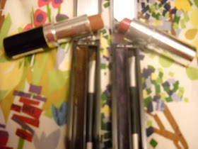 Here's another look at the Ink for Eyes along with my two favorite lipsticks--the only ones I use, really. Jane Haywire (soft brown), which probably doesn't exist anymore, is my warm weather color, and Ulta Romantic Red is my cool weather shade. Lipstick makes me feel confident, especially at work.