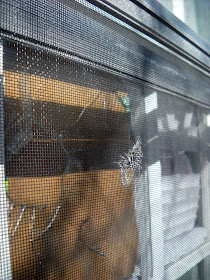 Josh pulled on his boots and went outside with the K-9 guy and lieutenant. I think the patrolman stayed with me. The two men showed Josh how the rock had probably gone through the window and how the hole was consistent with that. Josh asked how a rock of that size could have busted the screen, shattered the glass, and exploded the blinds. They said that the person must have thrown it extremely hard from the street or must have been standing in our yard. We've seen thought, with others' input, that the person must have fired the rock through a paintball gun, potato gun, or at the very least, a slingshot.